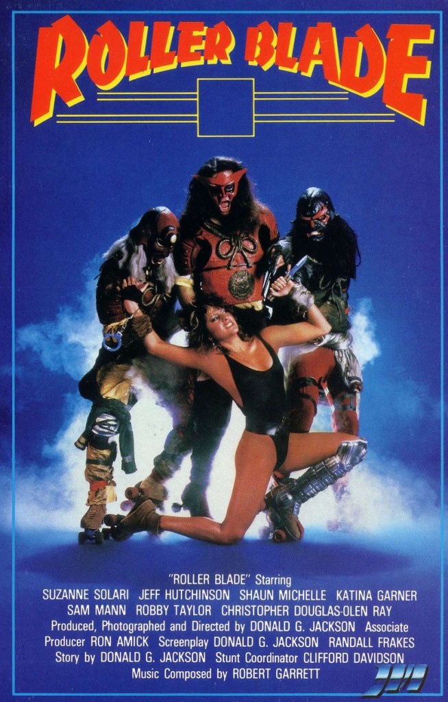 So, the Cosmic Order of the Roller Blade, which is a bunch of chicks dressed up as nuns, are fighting an evil overlord of skater punks and street trash, named Dr. Santicoy, along with his lil puppet henchman (Baby Saticoy) who loves to strip tin foil off of naked chicks (I mean, who doesn’t?): bad girl Shaun Michelle (80’s porn star of such films as California Valley Girls and Flesh & Laces parts 1 & 2) is trying to infiltrate the Order to steal some secretes for Saticoy, but then runs afoul of good girl Sister Sharon (Suzanne Solari, UFO Secret Video, Hell Comes to Frogtown, Night of the Beast) who tries to change the bad girl for Mother Speed (Katina Garner, The Tomb Cannibal Hookers, Hack-O-Lantern), while weird loner Sam Mann (Hard Rock Zombies, Kill or Be Killed, Guns of El Chupacabra) mumbles incoherently and blows a harmonica. There’s a whole lotta fightin‘, slashin’, skatin’, and tops coming off as the futuristic fur hits the fan – will the evil Dr. Saticoy’s diabolical plan to take over the powerstation by blasting over to it on a rocket-propelled motorcycle actually work? Or will the intrepid and mostly topless hot switchblade nuns stop him? This cow ain’t tellin’, you will just have to see it for yourself!