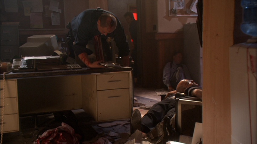 Sweet waitress Josie, played by Samaire Armstrong (Entourage, the OC, The Mentalist), is being stalked by Biker Guy Kane Hodder (he pretty mooch is Jason Voorhees), a ‘dark prince’ of hybrid werewolves, because…reasons. Well, she’s a sort of weird semi-wolf. Wise street lady Mary (The Birds’ Tippi Hedren) tells bad joke-telling bedhead cop Turley (Ryan Alosio) to protect her because if dark wolfie has fun and frolics with Josie then…bad stuff. And she has a mysterious 900 year old book to ‘prove’ it. Purple pantsuit-wearing McGowan (Jaime Bergman, David Boreanaz ex-Playmate wife) doesn’t believe them, of course, since its all nonsense, and gets et, along with some udder various folks, including an entire precinct of cops, until Josie FINALLY shuts her yap and shoots the bad wolf in the eye with a silver bullet (the only way to kill him, it would appear), and he falls off the building to his death. Or DOES he?? Oh, and friends Stacy (Andrea Bogart) and Anna (Sasha Craig) perform the amazing werewolf dance – which frankly shoots the film high up into stinky heaven! Grrr! Grrr!