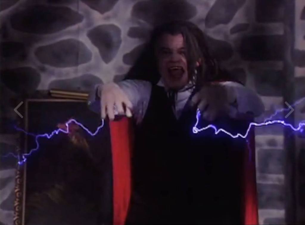 Whining doofus Steve (Danny Sachen) looses his girl friend when she dies in a lake water skiing because safety is for nerds; he goes to Prague to recover (as you do…), then goes sightseeing in Morovia, where he crashes his car, the locals make fun of him, and he falls for a local Euro-babe so lonely and desperate that even a schlub like Steve seems like an improvement. Cowever, the area is haunted by the weirdest Dracula ever (played by 3 different actors), and scene-chewing Van Helsing (Bruce Glover, the only name in this flick!) have to duke it out, amidst blue vampire lightning, vampire fireballs, and a plethora of bad acting and special effects. And in the end it was all just a dream. Or was it?? Who the heck knows, the whole herd nearly tore the spots off their backs with this one! :=8o And its like 90 minutes!!!