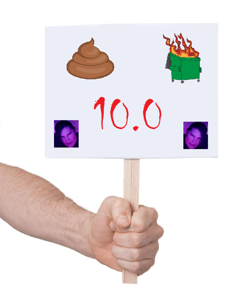 With that being said the scores are in and it wouldn’t take a genius to figure out what the scores are…. And I can just say everyone gave it an unanimous 10’s all around, giving us another 30 for the season, with a Stinky Average of 10.0. Since we have 1 extra episode per month this season has gotten quite a few 30s; I wouldn’t expect anything less from the fifth season. Which puts it on the Ladder of Stink next to the likes of Fateful Findings, Zombie Cop, Miss Werewolf (Which technically got a 30 plus), and more.