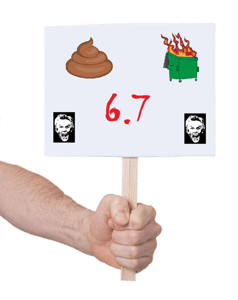 While this silly indie may be a personal favorite for Mr. Moody, the MooCow was less impressed – and Ms. Lydia was simply not having it! The MooCow found most of the characters annoying and the story less interesting, although the moosic was decent and cinematography showed real potential; but Ms. Lydia had very little positive to say about the film, hence the variety of scores on this one. Moody awarded the film a 3, but the MooCow went with a 7, and Lydia gave it the harshest score at 8, giving Haggard a total Stink Score of 18, and a Stinky Average of 6. On the Ladder of Stink Haggard is tied with Airborne, an-udder Moody favorite!