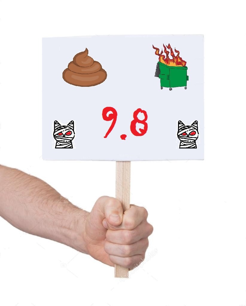 There was some truly heart-wrenching suffering while watching this film; the sighs and sobs cowming from some in this podcast cud make a stone weep. But they pulled themselves together and rendered a final verdict: everyone gave Curse of the Mummy Cat a deserved 10. Well, everyone except Paige, that is. Poor, innocent flower, even with all the pain and suffering she endured, she had enough hope inside to give this flick a 9.5, so cowfident she was that there are worse things in store for her – and there are! With Just Jenn, Paige, and the MooCow’s scoring the film 10’s and 9.5, the total Stink Score is 29.5, good for a Stink Average of 9.8. On the Ladder of Stink, that places Curse of the Mummy Cat below all the 30 rated stinkers, and just a shade above Actium Maximus. Worse than Actium Maximus, whoda thunk it??