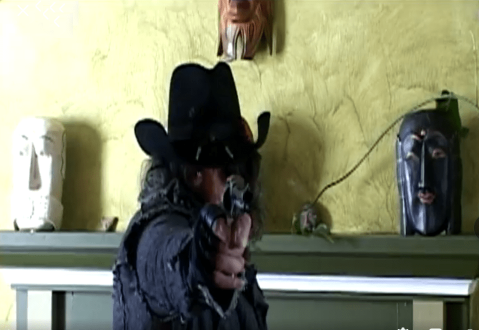 Well, it turns out in the old, old west, a farmer named Tucanbandman (because he bangs a couple of cans for pennies) gets murdereded, and is mummified, along with his faithful pussycat Don Gato, and they stick him in a chicken shack that is passing for an Atec pyramid; some would-be archaeologists disturb his sleep, and then the Tucanbandman mummy rages all over Roanoke in the best stop-motion/claymation tradition, meow meow meow! There is a Man With No Name bounty hunter, three lawnmower-riding banditos who cannot die, a Spanish witch, cowplete with flapping rubber bats and loads and loads of blood squibs, poor cgi fx, silly songs, and just out and out fun! Director Charles B. Cullen, you are a maniac and a genius, and you just go on being you, good Sir!